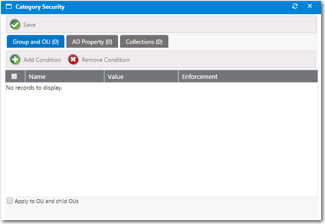 Use the Add Condition button to open the Add Condition Dialog Box and add conditions to control access to the reports in this category.
