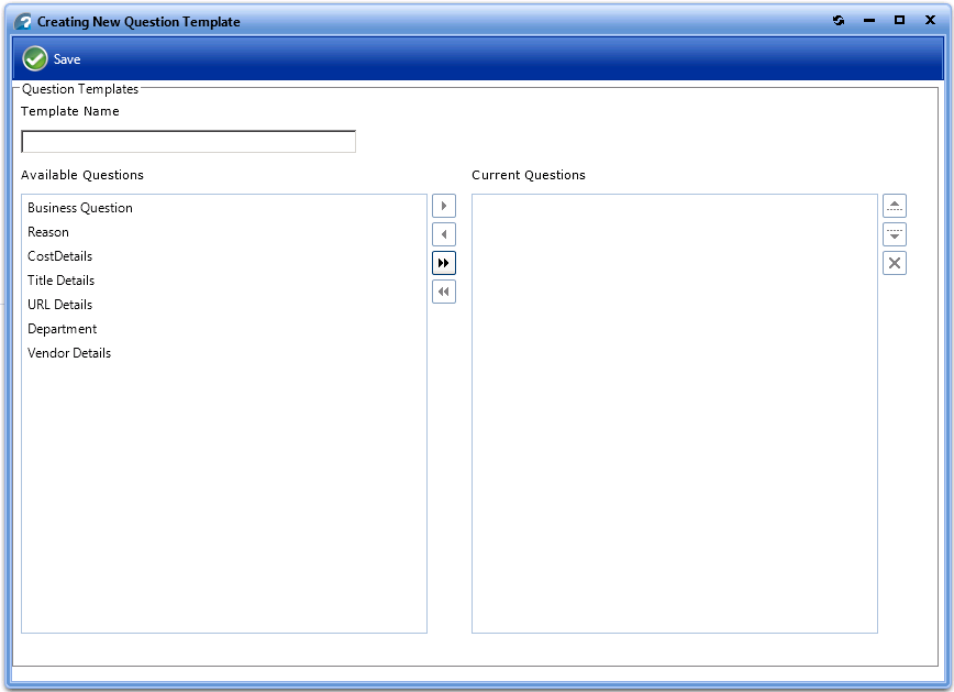Close the Question Template Properties dialog box. The new question template is now listed on the Template Manager View.