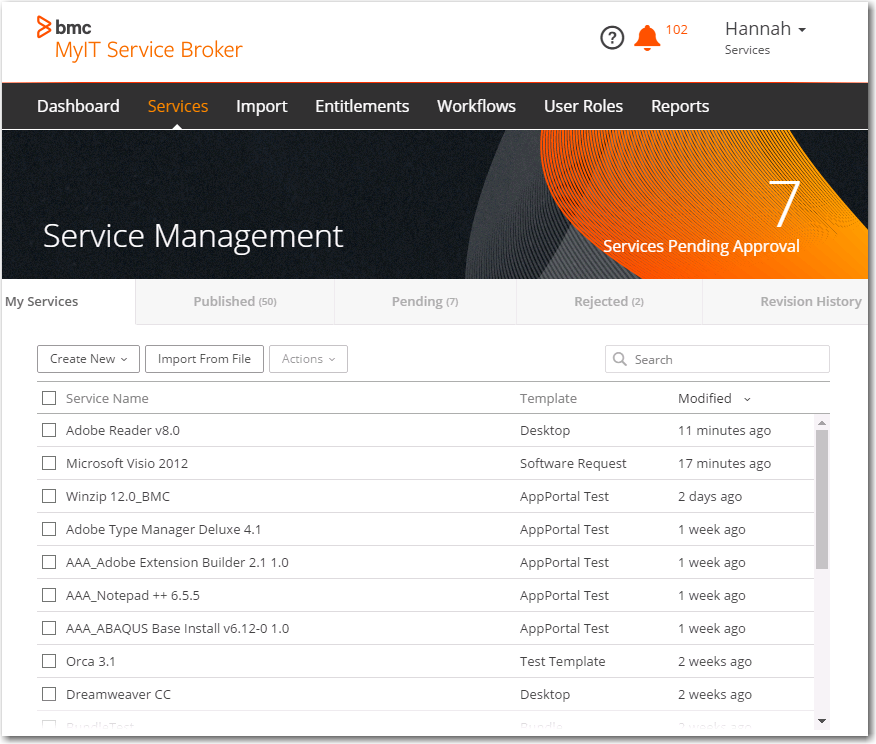 11. Click Queue for Import and observe that the status of the selected catalog item will be updated to Queued. Catalog items are imported from App Portal into BMC MyIT. Queue for import means that the catalog items are ready to be imported into BMC.