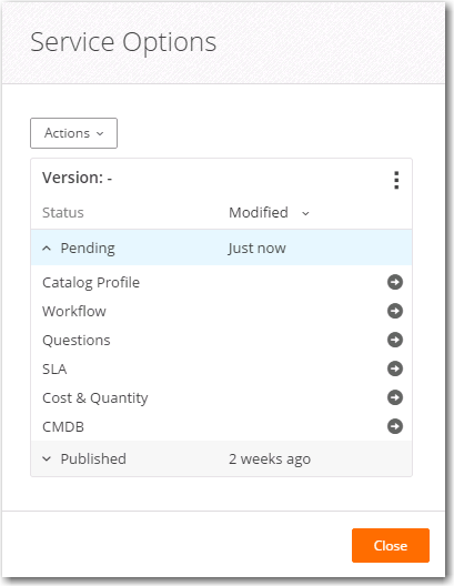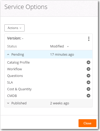 15. Double-click on a catalog item, such as Adobe Reader v8.0. The Service Options view opens.