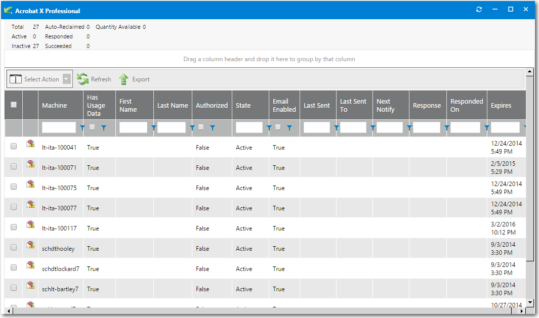 4. View the items in the license reclamation grid, which is where the records and responses to the campaign are tracked.
